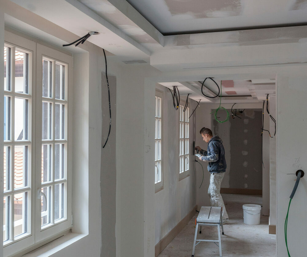 Au-delà de la création de cloisons, Isol&Co apporte un soin particulier aux finitions, étape essentielle pour un rendu propre et élégant. Enduits, bandes, rattrapage de surfaces, habillages ou moulures : nous maîtrisons l’ensemble des techniques de plâtrerie décorative pour obtenir des murs et plafonds parfaitement lisses. Cette qualité de finition contribue non seulement à l’esthétique de votre intérieur, mais également à votre confort quotidien en assurant une base saine et durable pour vos futures décorations.