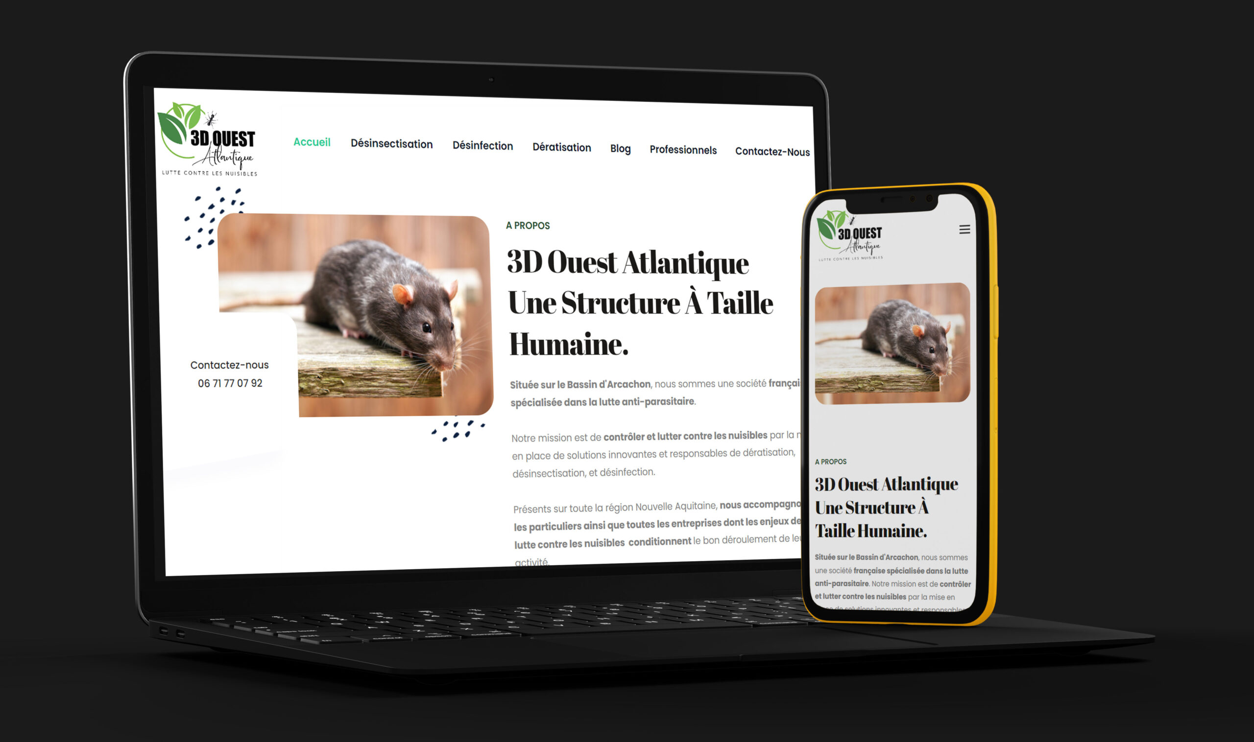3D Ouest Atlantique est une société spécialisée dans la lutte contre les nuisibles. Dans le cadre de son développement, le gérant a choisi Topymedia afin de l’accompagner dans sa communication : refonte de son logo, création de site internet, gestion des réseaux sociaux et créations graphiques.