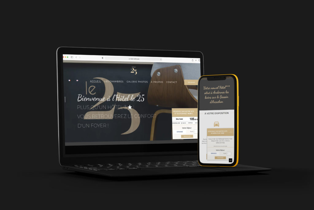 L’Hôtel Le 25 a ouvert ses portes en avril 2022 à Andernos Les Bains sur le bassin d’Arcachon. Nous avons accompagné les propriétaires dès l’installation de la première pierre ! A ce titre, nous avons définit un plan de communication, créé un site internet, réalisé des shootings photos…