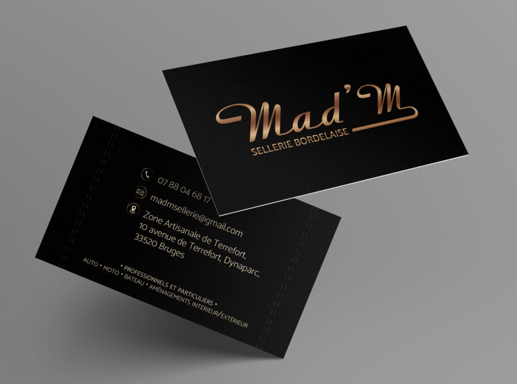 Mad’M – Sellerie Bordelaise est une sellerie située à Bruges proposant un service de création et de rénovation sur mesure (auto, moto, meuble…). L’entreprise a fait appel à nos services de création d’identité visuelle et de réalisation de différents supports de communication (cartes de visite, flyers).