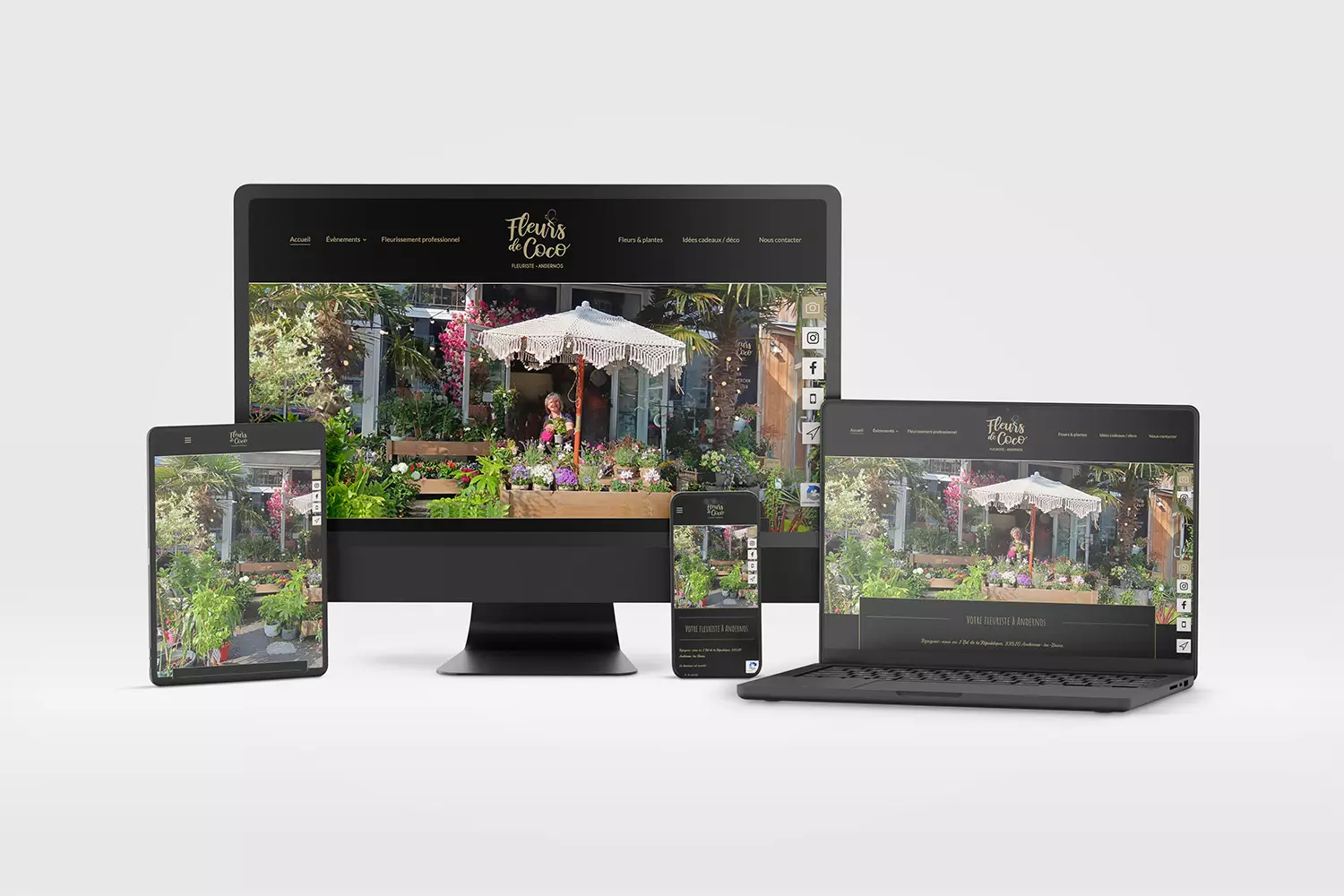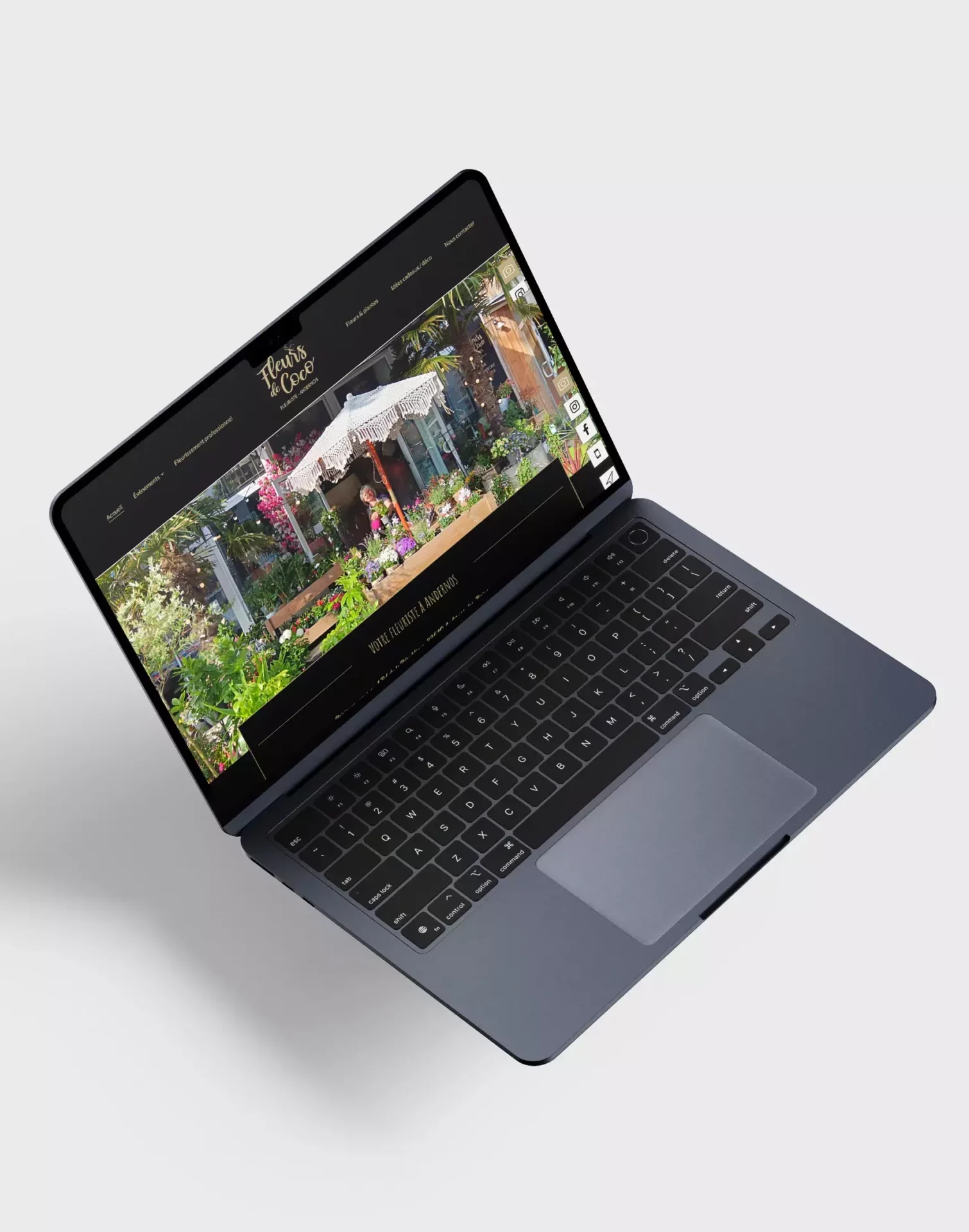 Pour Fleurs de Coco, nous avons conçu un site vitrine élégant et chaleureux, à l’image de l’univers floral de la marque. Le site a été pensé pour mettre en valeur les créations florales et les services proposés, tout en offrant une navigation fluide et intuitive. Entièrement responsive, il s’adapte à tous les supports — ordinateur, tablette et mobile — afin d’assurer une expérience utilisateur optimale et de faciliter la prise de contact avec la boutique