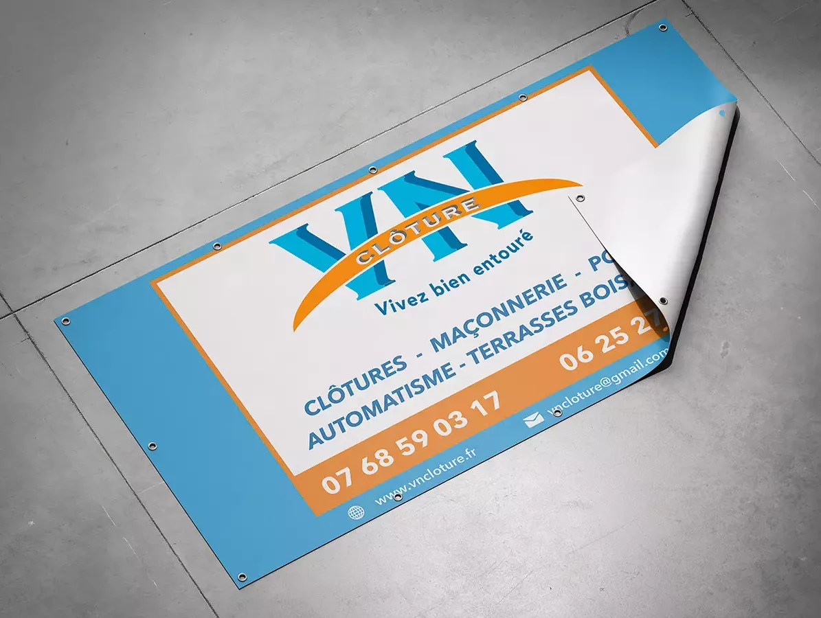 Dans le cadre de notre collaboration avec VN Clôture, nous avons conçu un panneau de chantier sur mesure, en cohérence avec l’identité visuelle de l’entreprise. Cet outil de communication permet de valoriser le savoir-faire de VN Clôture directement sur le terrain, tout en renforçant sa visibilité locale auprès des passants et riverains. Avec un design clair, professionnel et impactant, le panneau reflète l’image de l'entreprise et contribue à développer sa notoriété.