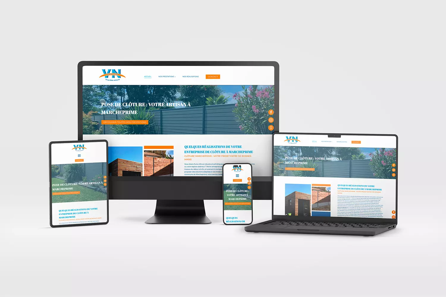Pour l'entreprise VN Clôture, nous avons réalisé un site vitrine moderne et fonctionnel, parfaitement adapté à la charte graphique de l’entreprise et à ses besoins spécifiques. Le site met en valeur ses prestations de pose et d’installation de clôtures mais aussi d'aménagement extérieur ou encore de maçonnerie à travers une navigation claire et intuitive. Entièrement responsive, il assure une expérience utilisateur optimale sur tous les supports et reflète l’image professionnelle et la qualité de service de l’entreprise.