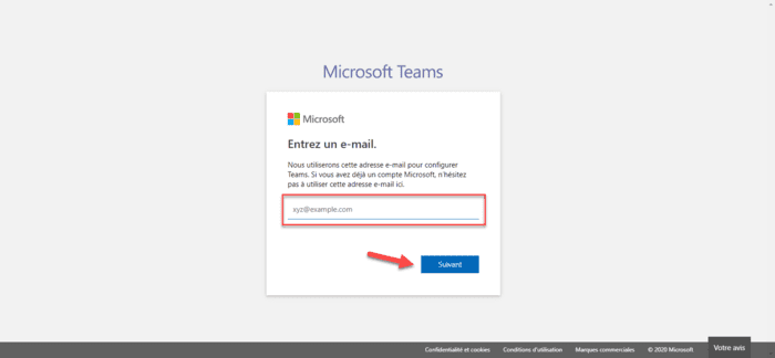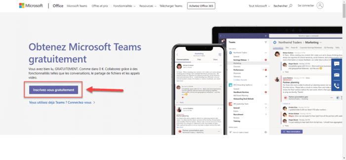 1. Accédez à https://products.office.com/fr-fr/microsoft-teams/free et cliquez sur le bouton « inscrivez-vous gratuitement ».
