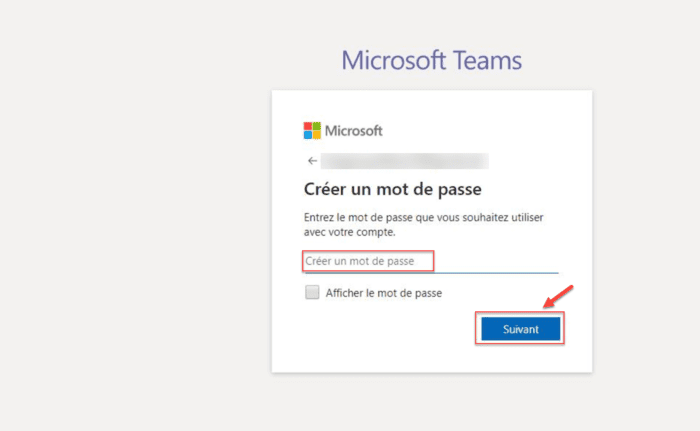 4. Créez votre mot de passe puis cliquez sur le bouton « suivant ». Votre mot de passe doit contenir 8 caractères dont 1 caractère spécial.