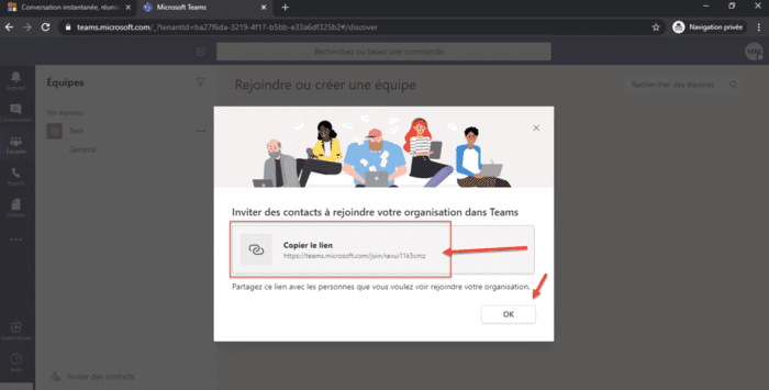 8. Votre compte Teams est maintenant créé. Vous pouvez dorénavant, partager le lien que Teams vous propose à votre équipe.